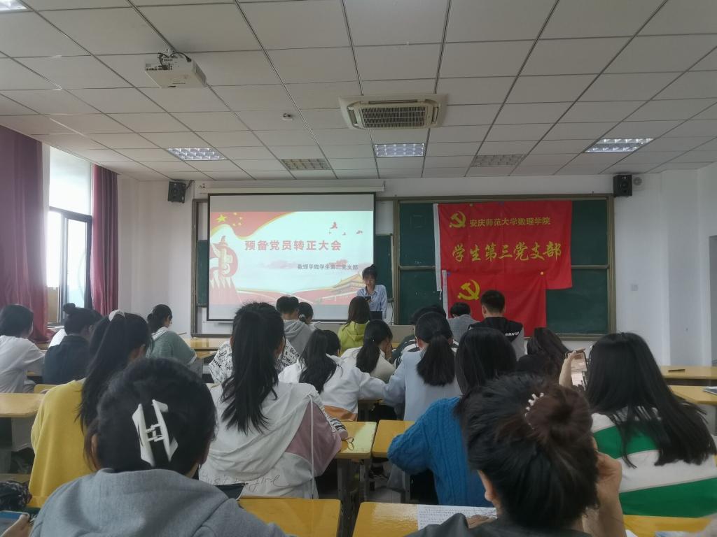 5月19日下午,太阳成集团tyc234cc学生第三党支部在太阳成集团tyc234cc601教室成功召开预备党员转正支部大会。支部正式党员、预备党员、发展对象参加了此次会议,会议由党支部书记黄兴强老师主持。