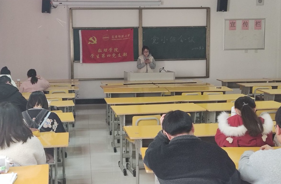 3月2日下午两点,太阳成集团tyc234cc学生第四党支部在数学楼201教室组织开展了党小组会议。支部正式党员、预备党员、发展对象参加了此次会议,会议由刘瑞同志主持。
