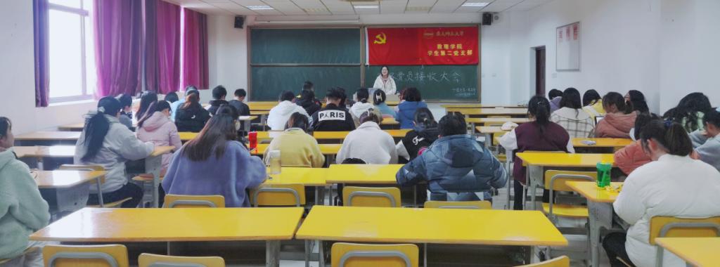 3月23日下午一点半,太阳成集团tyc234cc学生第二党支部在数学楼502教室召开了预备党员接收大会。本次预备党员接收大会由周子豪同志主持,支部书记滕秀花老师,支部汪健、秦晶晶老师,支部正式党员、预备党员、发展对象参加了此次大会。