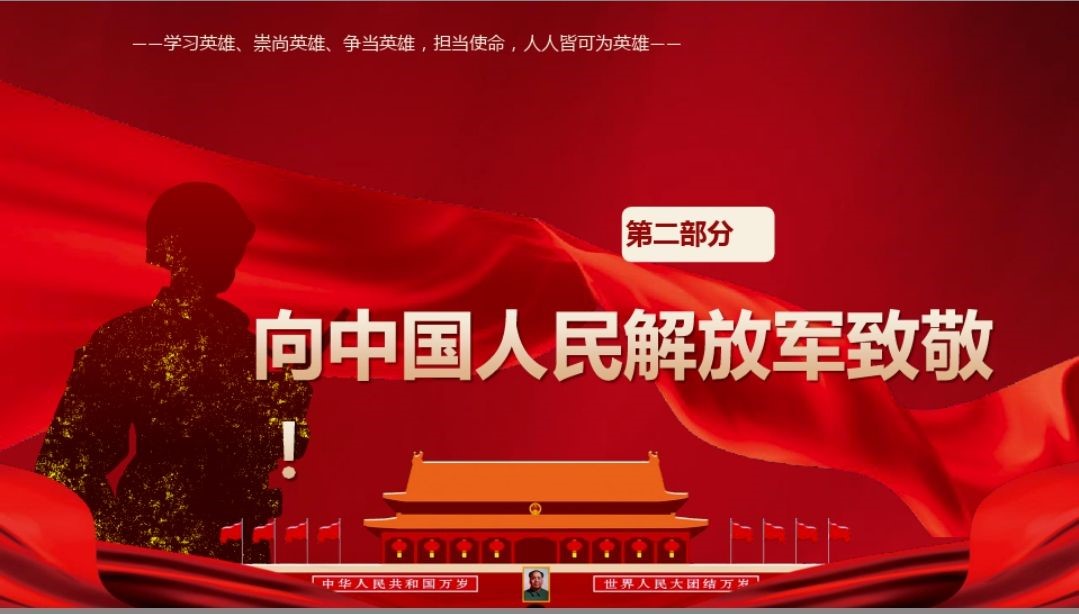 会上,徐怡同志提到了2020年6月份中印对峙事件,陈祥荣、肖思远等同志英勇牺牲。展现出誓死捍卫祖国领土的赤胆忠诚和一不怕苦、二不怕死的战斗精神,彰显了新时代卫国戍边英雄官兵的昂扬风貌。自中国军队成立起,就高举党的旗帜,英勇投身到为中国人民求解放、为中华民族某独立的历史洪流中。中国军人有着最坚实的胸膛、最宽阔的肩膀、最炙热的心,他们用热血守护祖国安宁,守护人民安康。习近平总书记强调,“人民军队始终是党和人民完全可以信赖的英雄军队。”中国军队是人民的军队,自诞生之日起,就与人民血肉相连、命运相牵。向新时代最可爱的人——中国军人致敬!