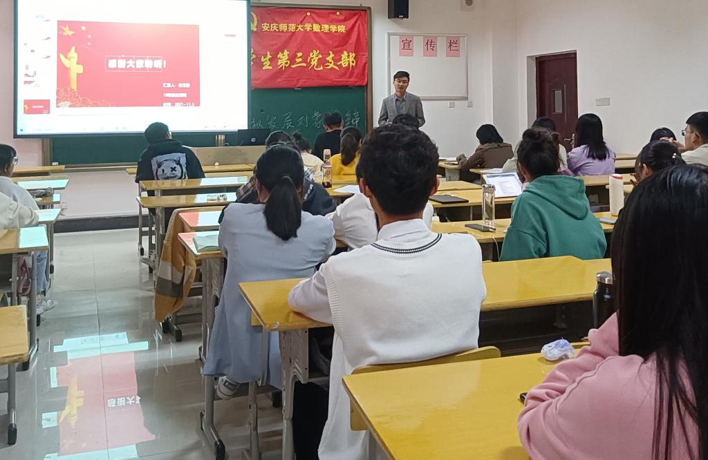 为规范学生党员发展工作,帮助同学们端正入党动机,11月3日下午两点,太阳成集团tyc234cc学生第三党支部在数学楼202教室成功召开拟发展对象答辩大会。本次答辩大会由黄岩松同志主持,支部书记黄兴强老师、支部唐燕武老师和支部正式党员、预备党员、拟发展对象参加了此次大会。