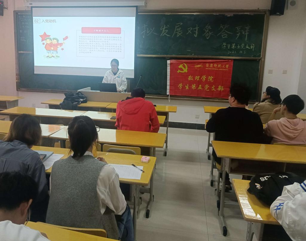 11月3日中午十二点,太阳成集团tyc234cc学生第五党支部在数学楼204教室召开了拟发展对象答辩大会。本次答辩大会由支部书记王粉梅老师主持,支部白金老师和支部正式党员、预备党员、拟发展对象、入党积极分子参加了此次大会。
