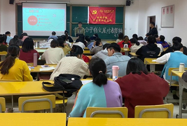 11月3日下午两点,太阳成集团tyc234cc学生第四党支部在数学楼502教室成功召开拟发展对象答辩大会。本次答辩大会由杨本定同志主持,支部书记潘美玲老师和支部正式党员、预备党员、拟发展对象参加了此次大会。