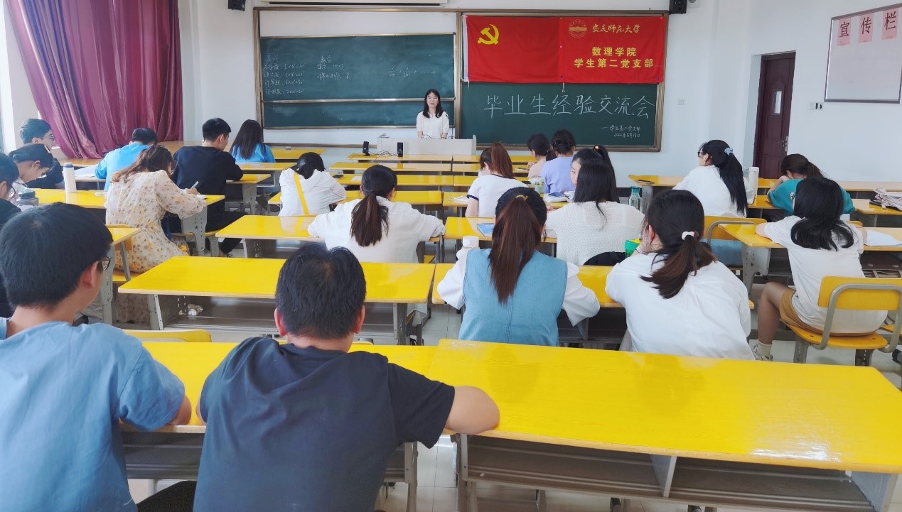 为了党员同志们能够从优秀毕业生考研、就业的宝贵经历中汲取经验,5月18日下午一点,太阳成集团tyc234cc学生第二党支部在数学楼601教室召开了毕业生经验交流会。此次活动由程围围同志主持,支部书记滕秀花老师,支部正式党员、预备党员、发展对象和2022届毕业生代表参加了此次活动。