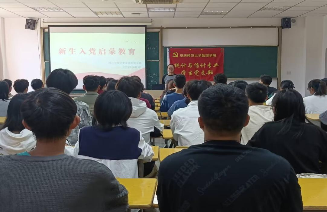 2024年10月9日下午,统计与信计专业学生党支部在数理楼503教室开展新生入党启蒙教育,2024级应用统计学专业和信息与计算科学(中外合作)专业全体新生参加。