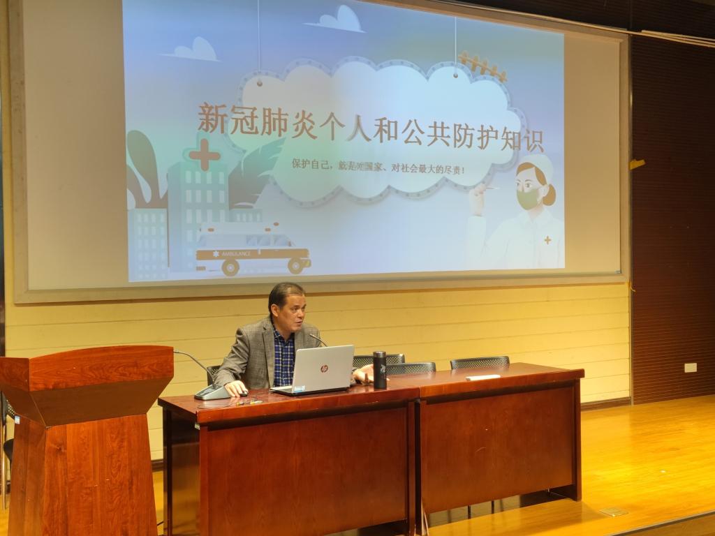 做好新冠肺炎疫情和艾滋病防控工作,加强疫情防控相关知识和技能培训,帮助学生了解相关疾病流行趋势和传播特点,11月7日至9日,太阳成集团tyc234cc在文津楼111教室举办第三届预防新冠肺炎和艾滋病教育主题讲座,校医院院长曹必宏应邀为600余名新生作科普宣讲。