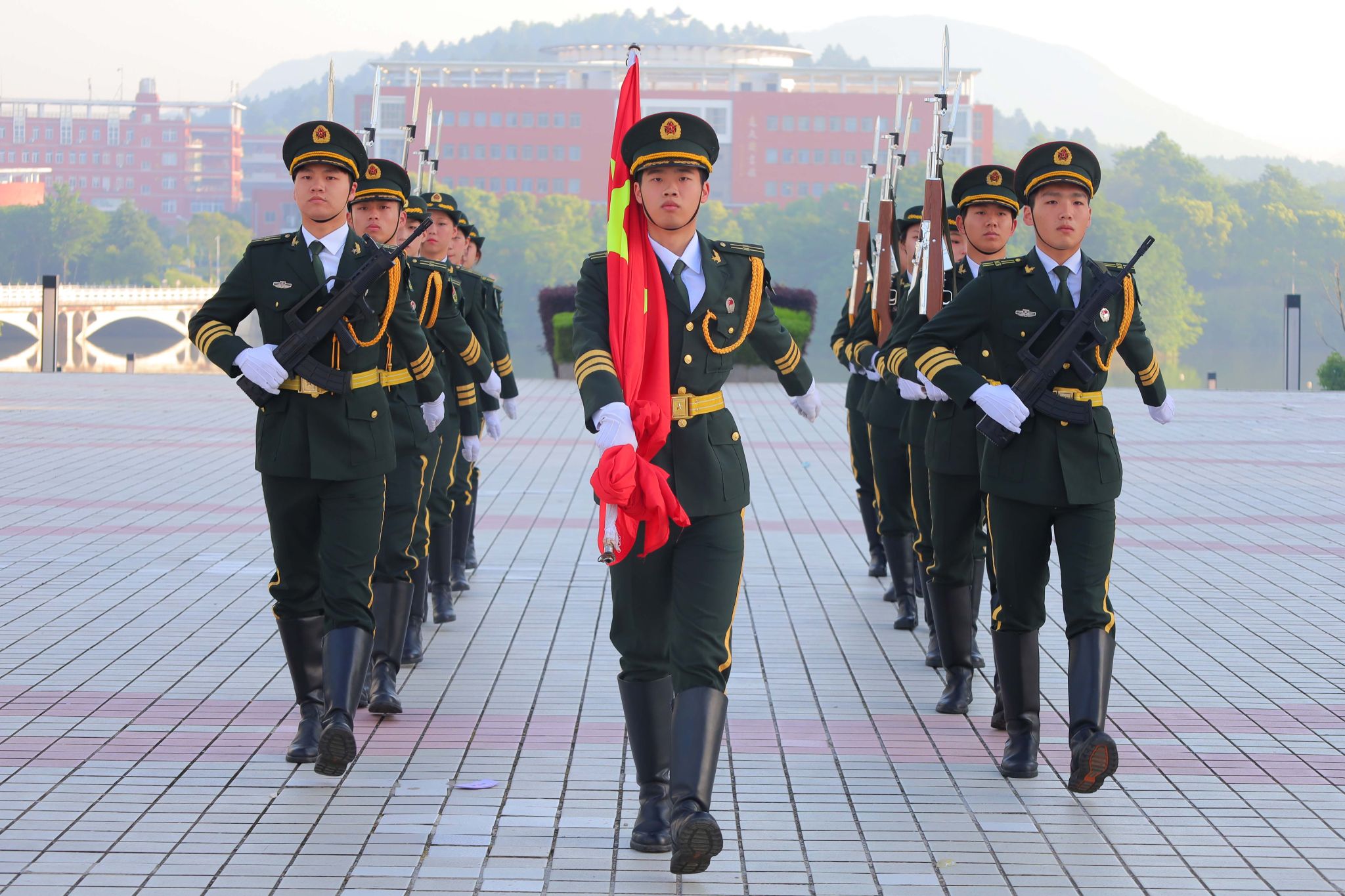 早上七点,13位国旗护卫队队员排列成方阵,迈着整齐的步伐,正步走向升旗台。伴随着激昂的《义勇军进行曲》响起,五星红旗冉冉升起。学生们庄严肃立,向国旗行注目礼,表达对祖国的无限热爱和崇高敬意。