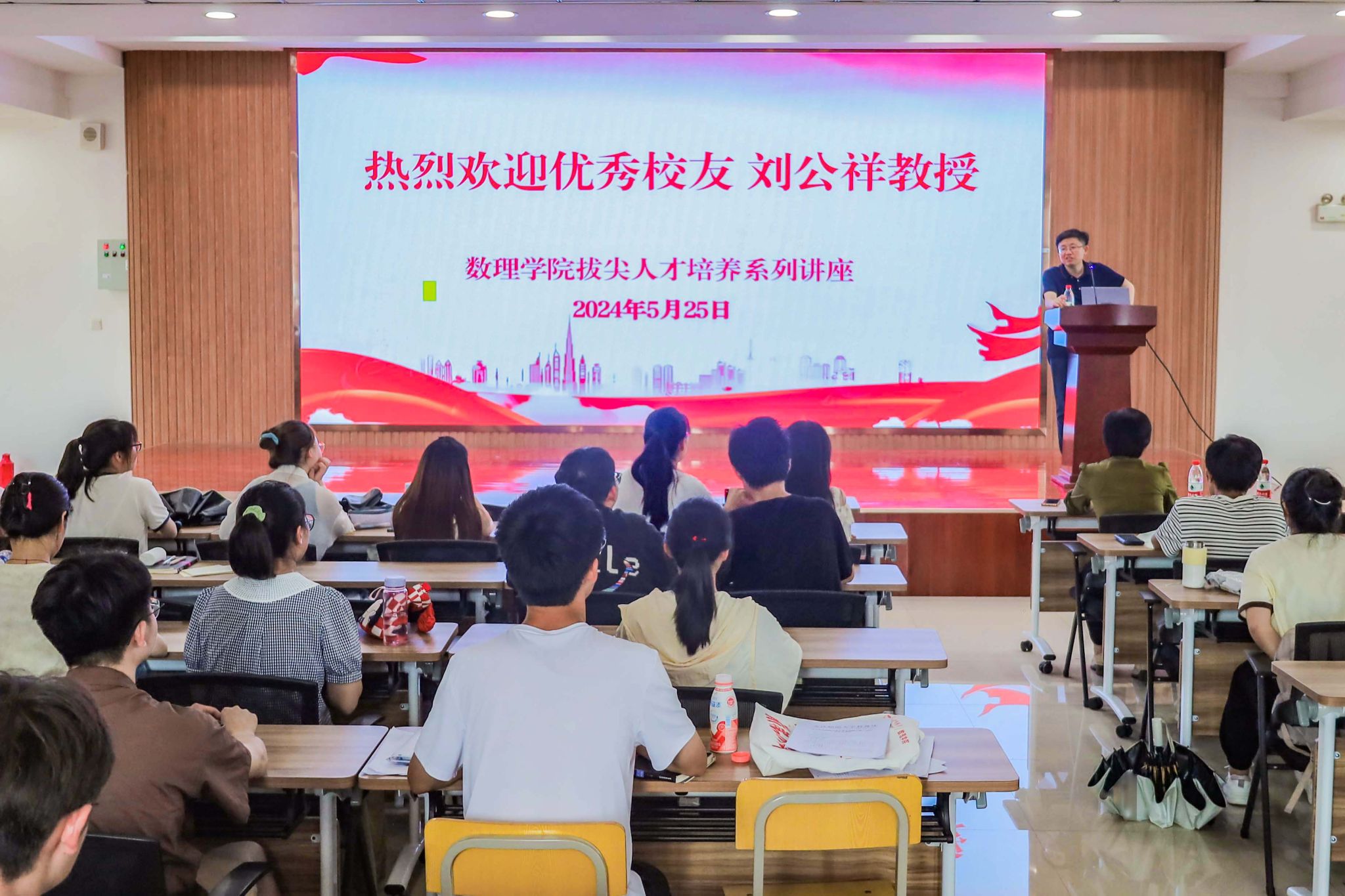 5月25日,太阳成集团tyc234cc在401报告厅举办拔尖人才培养讲座。学院特邀请优秀校友、南京大学数学系教授、博士生导师刘公祥作报告。学院部分教师、4个稼先班学生和稼先班辅导员老师100余人参会。会议由学院党委副书记彭芳珍主持。