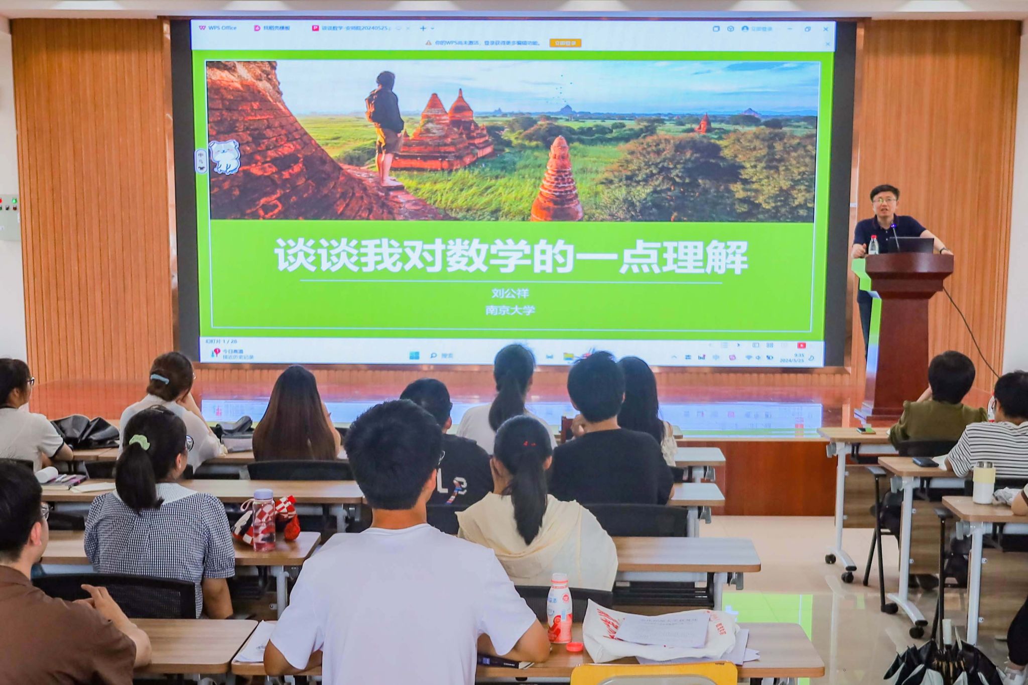 “对数学的热爱支撑着我十几年如一日地研究它。”刘公祥介绍。通过分享丘成桐先生为研究一个问题列举出一千多个函数的事迹,刘公祥强调了学习数学需要“热爱”与“勤奋”。他坦言,兴趣是培养起来的,对于数学,学生以“勤奋”先行,“热爱”自然而生。“学生们要坚定自己对数学的‘爱’,坚持不断研究数学。”刘公祥说。