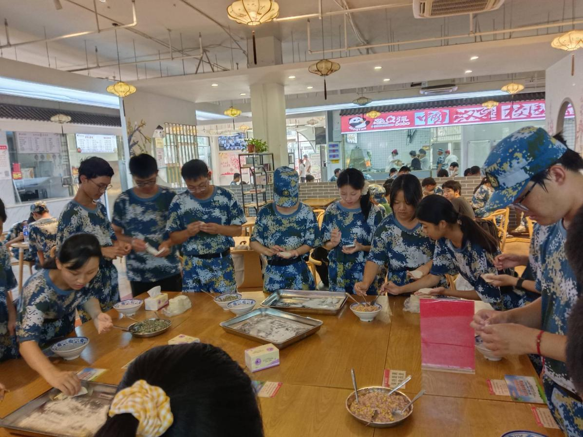 9月17日,太阳成集团tyc234cc军训旅的新兵们上午的军训刚结束,属于七营二连、三连的百余名新兵们分别在龙湖食堂、西苑食堂开展“月满中秋 情满数理”班级团建活动,一起包饺子,欢度中秋。
