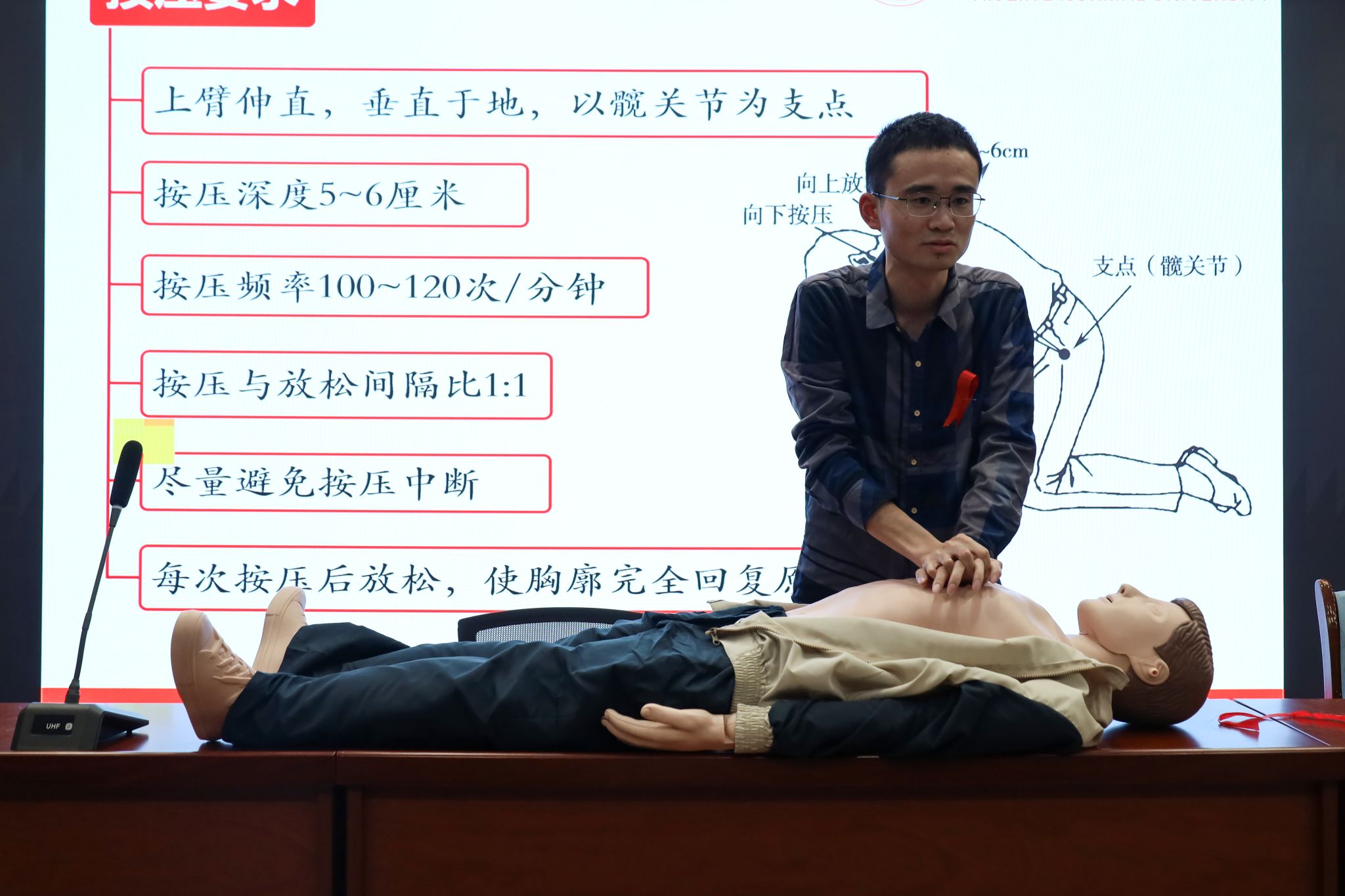 “先生先生,能听到吗?”校医院医师朱琳通过现场演示为学生们讲解着急救知识。“在进行心肺复苏术前要确认现场的安全,同时指定某人拨打急救电话120。”朱琳表示,心肺复苏术是一项重要的急救技能,可以帮助人们在紧急情况下挽救生命,学生们要提高自己的急救能力和应对突发状况的能力。