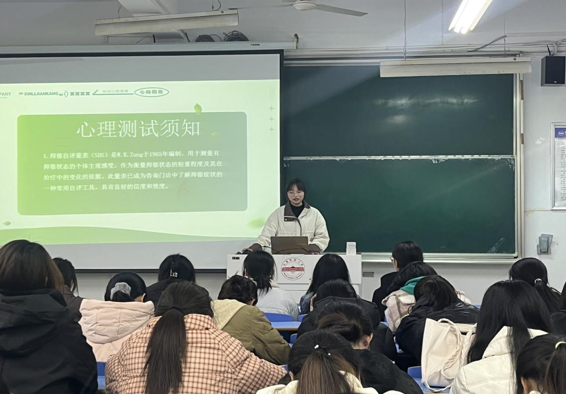 班级心理委员进行了深入浅出的讲解。她详细阐述了大学生心理健康的标准、常见心理问题的表现及应对策略,同学们纷纷表示受益匪浅。在案例分享环节,同学们分享了身边或亲身经历的心理健康相关事例,内容涵盖从适应大学生活到处理复杂人际关系等多个方面。通过分享,同学们深刻认识到心理健康问题无处不在。在互动环节,同学们积极提问,就压力疏导、情绪管理等关心的问题展开了热烈讨论,现场气氛活跃。
