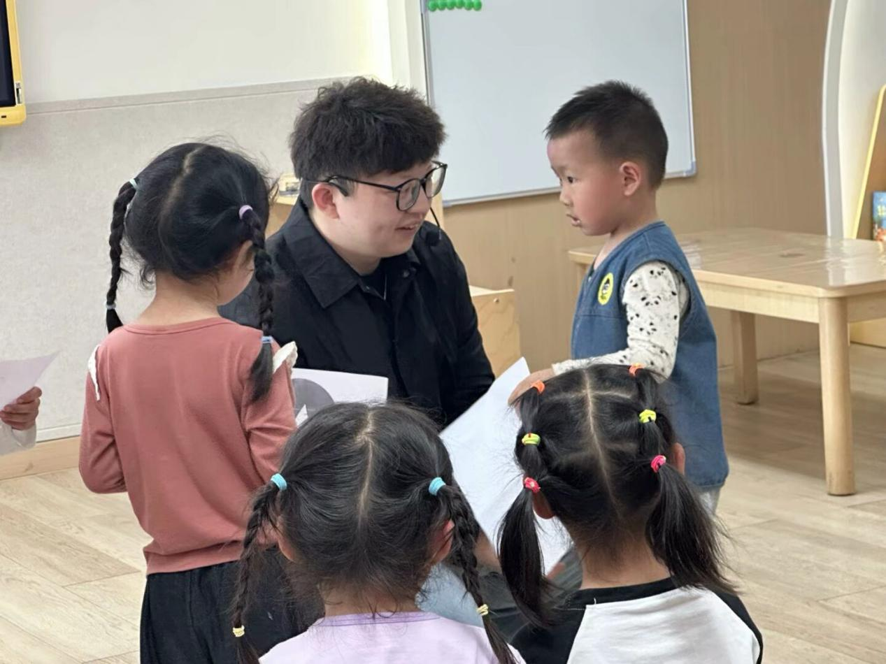 授课伊始,信息与计算科学专业2023级(2)班黄宇豪同学以一个引人入胜的小故事作为开场,瞬间吸引了孩子们的目光,成功点燃了他们对课程的好奇心。随后,他运用生动形象、趣味横生的语言,向幼儿园的孩子们深入浅出地讲解“害怕”这一情绪的含义。孩子们在课堂上表现得十分活跃,积极踊跃地回答问题,现场气氛热烈而浓厚。在老师的精心引导下,孩子们纷纷加入探索“自己害怕什么”的游戏中,他们兴奋地交流着自己的发现,沉浸在充满趣味的科学世界中。