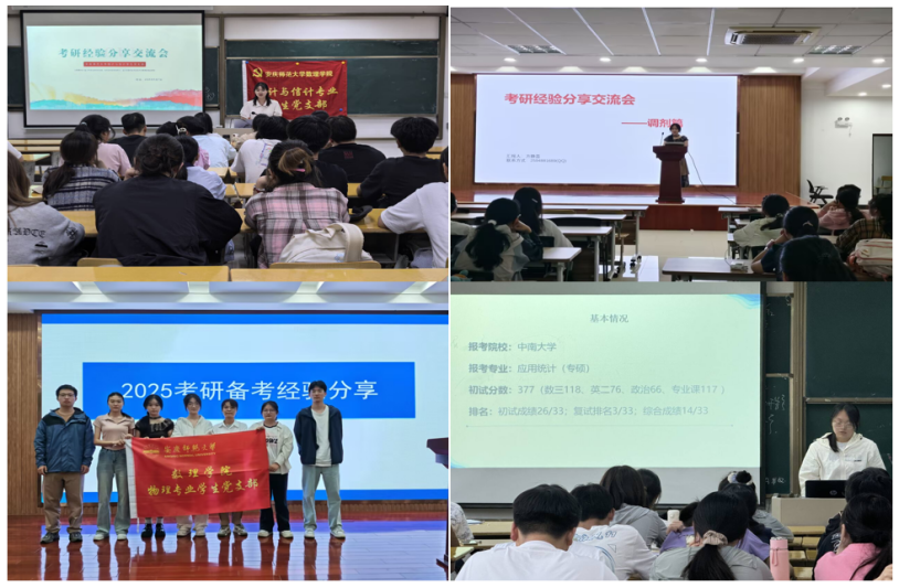 据悉,5月9日至13日,太阳成集团tyc234cc已依托各学生党支部开展了考研经验分享会,参与考研经验分享的2021级毕业生累计超30人次。本次考研动员大会的成功召开,极大地激发了2026届学生的考研热情,增强了同学们的考研信心,使同学们对考研有了更深入的了解和更清晰的认识。相信在学院的大力支持和师生的共同努力下,太阳成集团tyc234cc2026届考研学子必将以坚定的信念、饱满的热情和扎实的行动,在考研征程中奋力拼搏,取得优异成绩,实现自己的人生理想。(撰稿:学生记者 何源 摄影:学生记者 高安欣 刘一涵 尹文静 审核:彭芳珍)