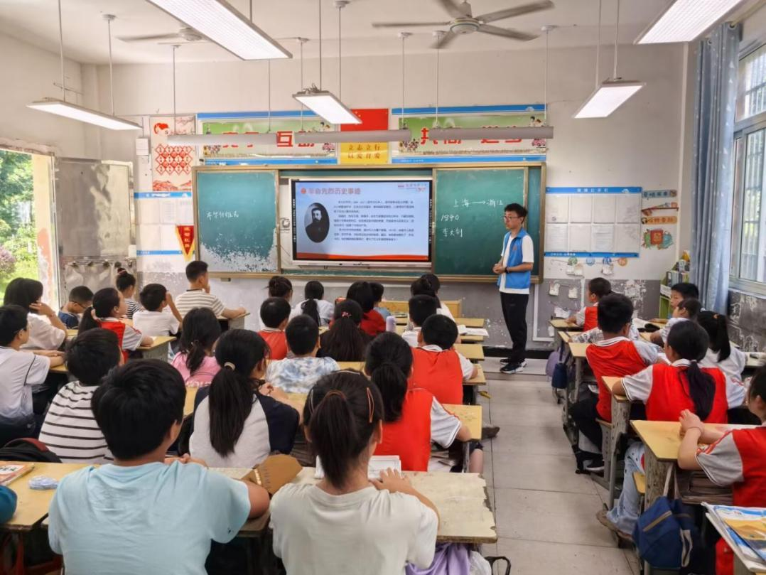 红船筑梦助学队的队员们以饱满的热情和丰富的形式,将党史知识巧妙融入课堂。他们通过多媒体和视频影像等形式展示新中国建设的辉煌成就,深情讲述革命先烈的英勇故事。课堂上,队员们创新教学方法,采用互动问答、情景模拟等方式,引导学生积极参与,让党史知识在轻松愉快的氛围中深入人心。
