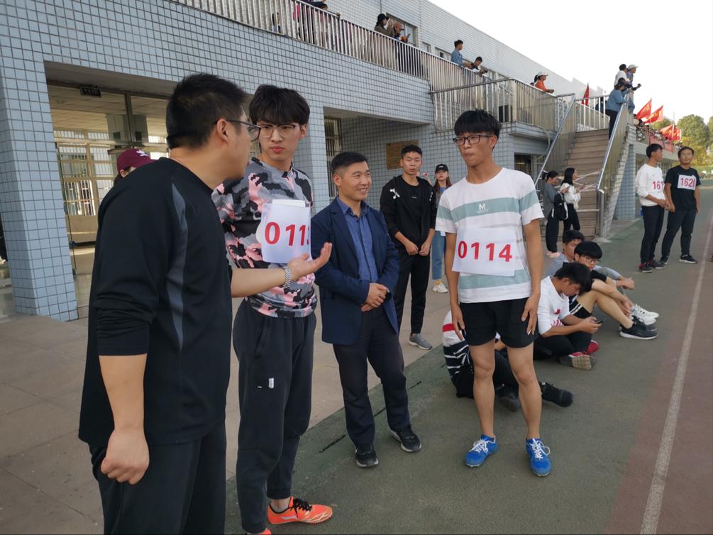 10月31日下午,学院院长申传胜、党委副书记何骏、辅导员汪健老师来到田径场对运动员们进行慰问工作。