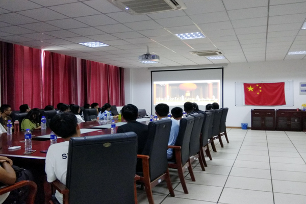 为了见证这个伟大的历史性时刻,同学们很早就来到了学院307会议室观看点。在观看过程中,同学们不时高唱国歌,鼓掌庆祝,一起分享着举国同庆的喜悦,感受着与国同欢的情怀,深刻体察着今日中国的军威国魂,共同见证着伟大祖国的繁荣富强。更多的同学在宿舍和家中自觉全程收看收听了相关报道活动。