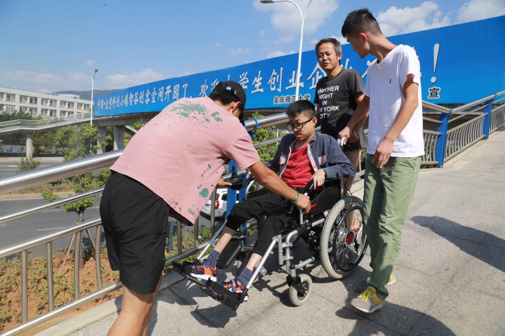 虽因先天性下肢残疾无法行走,但坚强的管文龙从未放弃自己,努力学习,为未来奋斗。今年高考,他被太阳集团tyc234cc数学与计算科学学院应用统计学专业录取,也是2019大皖阳光助学行动帮助的一名励志大学生。9月21日,管文龙和父亲前往太阳集团tyc234cc报到。原来,由于身体状况无法参加军训,管文龙只得在新生军训结束后才到校报到,比同学们晚了两周。