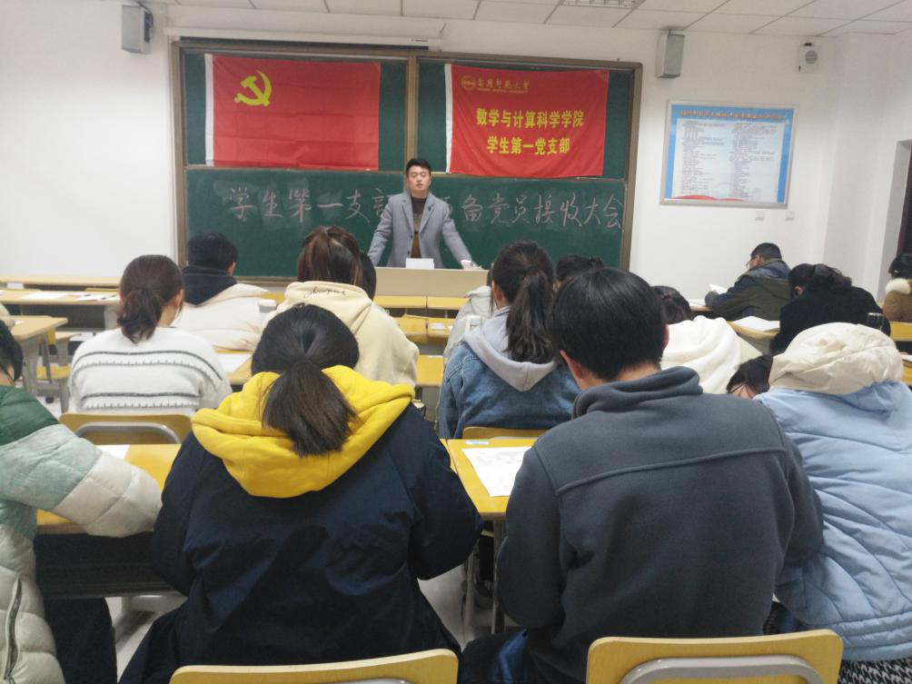 12月19日下午,我院学生第一党支部在数学楼205教室召开预备党员接收大会,会议由党支部书记李会葆同志主持,党支部正式党员、预备党员、发展对象共计30余人参加了会议。