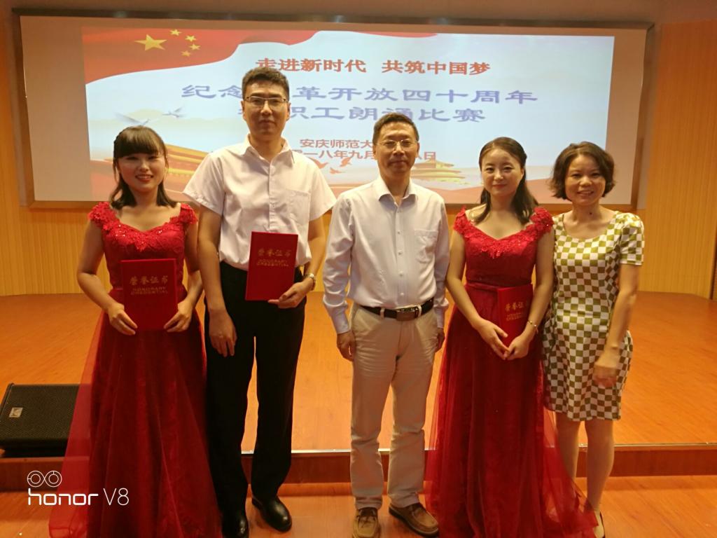9月28日,在我校纪念改革开放40周年教职工朗诵比赛中,我院杨翠、李军、张敏三位老师发挥出色,荣获一等奖。