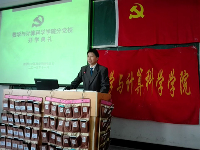 11月4日下午,数学与计算科学学院分党校举行第52期入党积极分子培训班开学典礼。数学与计算科学学院党总支书记,分党校校长周其生教授,各学生党支部书记及全体学员参加了此次典礼。典礼由该院党总支副书记计裕人主持。