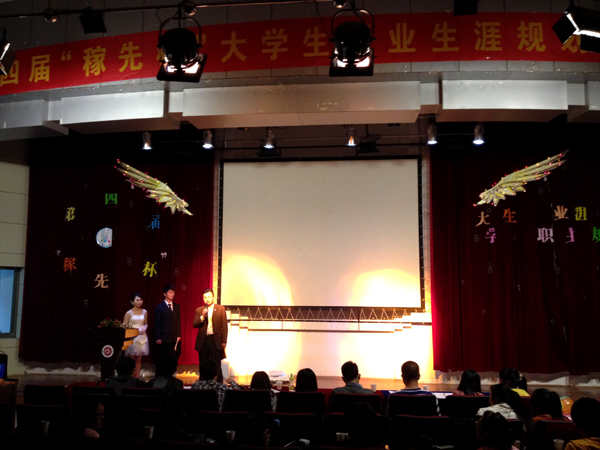 “走神的路,让神无路可走”、“把握现在规划未来”……这些霸气的比赛宣言就出现在职业规划大赛的比赛现场。4月28日晚上,由数学与计算科学学院、计算机与信息学院、物理与电气工程学院共同举办的第四届“稼先杯”大学生职业生涯规划大赛决赛在图书馆西厅举行,9名同学参加角逐。我院党总支副书记计裕人,团总支书记黄建平,计算机与信息学院党总支副书记江伟到现场观摩了比赛。