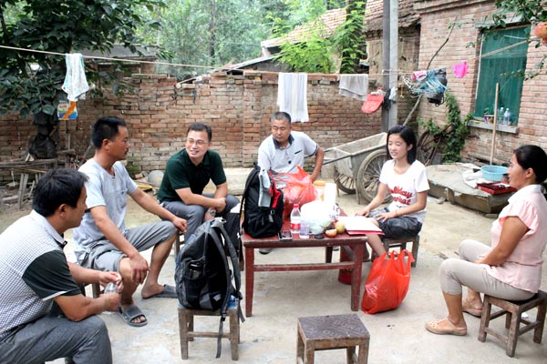 为了使2014级新同学入学前就能感受到学校的关怀和温暖,更好地宣传学校的资助政策,在前往河南走访之前,走访组就制定了走访计划,把2014级新同学纳入走访名单中。通过电话问询等方式,走访组在前期了解到家住虞城县的2014级新生小李同学家庭颇为困难,决定前往走访慰问。走访组在实地走访中看到,小李同学一家四口人至今居住在三间低矮的房子里,家徒四壁,家庭的主要收入来源是几亩玉米地,今年基本颗粒无收。