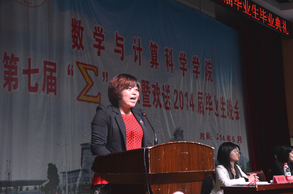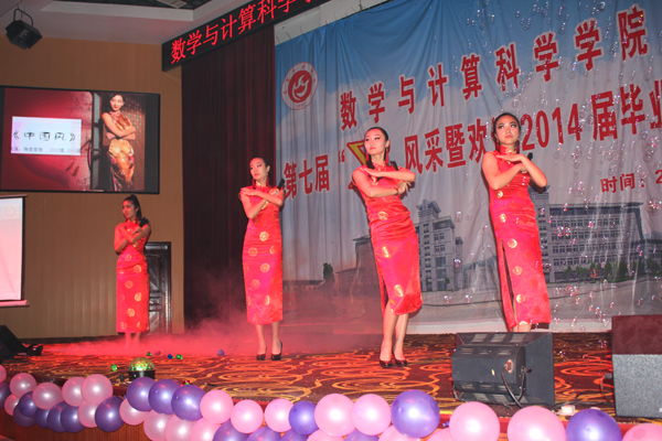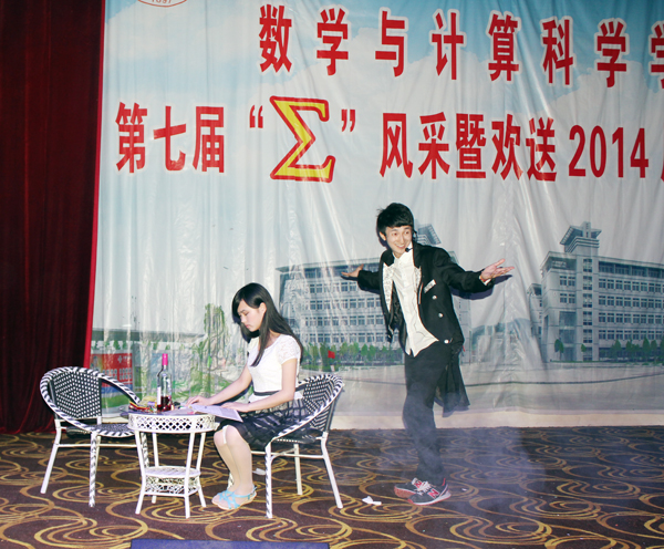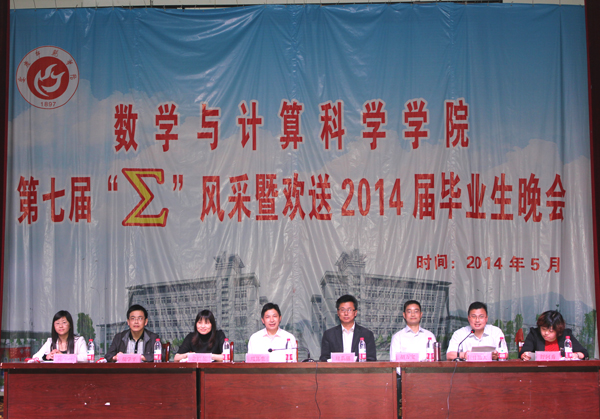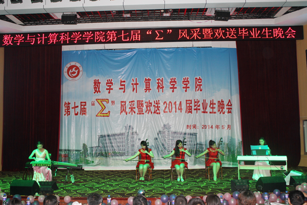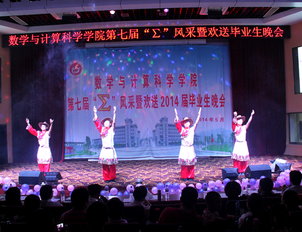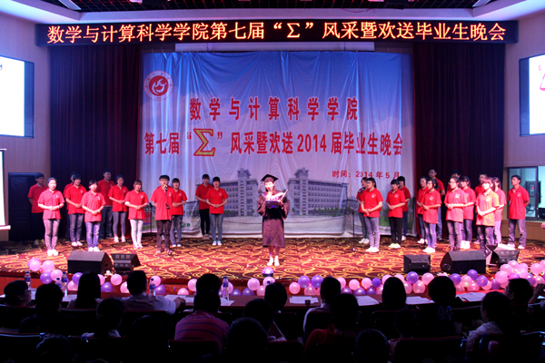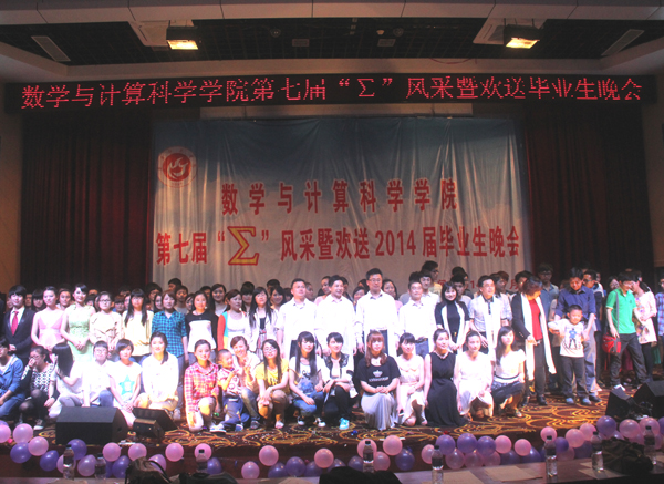“∑”风采暨欢送毕业生文艺晚会作为数学与计算科学学院的学生品牌活动之一,旨在为毕业生们提供一个感恩母校、互道离别、讲述不舍深情的舞台。多年来晚会在沿袭传统的同时也在形式和内容上不断创新发展,成为了毕业时节广大师生共同期待的盛宴。祝愿数学与计算科学学院2014届毕业生们满载着期冀与祝福起航,在新的人生旅程中乘风破浪、再创辉煌!(赵紫薇 黄建平)