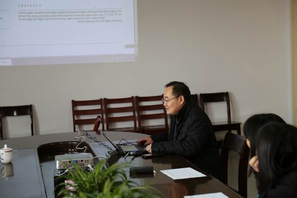 江苏师范大学苗正科教授在作“On strong list edge coloring of subcubic graphas”报告