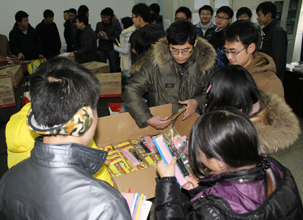 “谢谢老师们关心”“我们真的很感动,一定好好考”“雀巢奶粉啊,我们平时都舍不得买的”……元月2日下午,我院辅导员办公室内不断传出欢笑的声音,他们都是接到通知前来领取雀巢奶粉和考试用品的四年级学生。