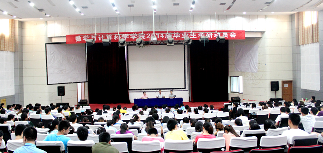院长叶淼林教授在会上作动员讲话,他指出,多年来,学院班子一直高度重视学生考研工作,但是专题召开由某个年级全体同学参加的考研动员大会是数学与计算科学学院学生工作历史上的第一次。讲话中,他结合亲身经历和教育培养孩子的经验,分析了国内国际经济发展形势和今年就业形势,认为考研已经成为本科毕业生提升自己的必然需要。他要求,2010级学生树立“都要考研,都去考研”的思想,要从现在开始全身心投入进去,要坚持到底、坚定信念,持之以恒。