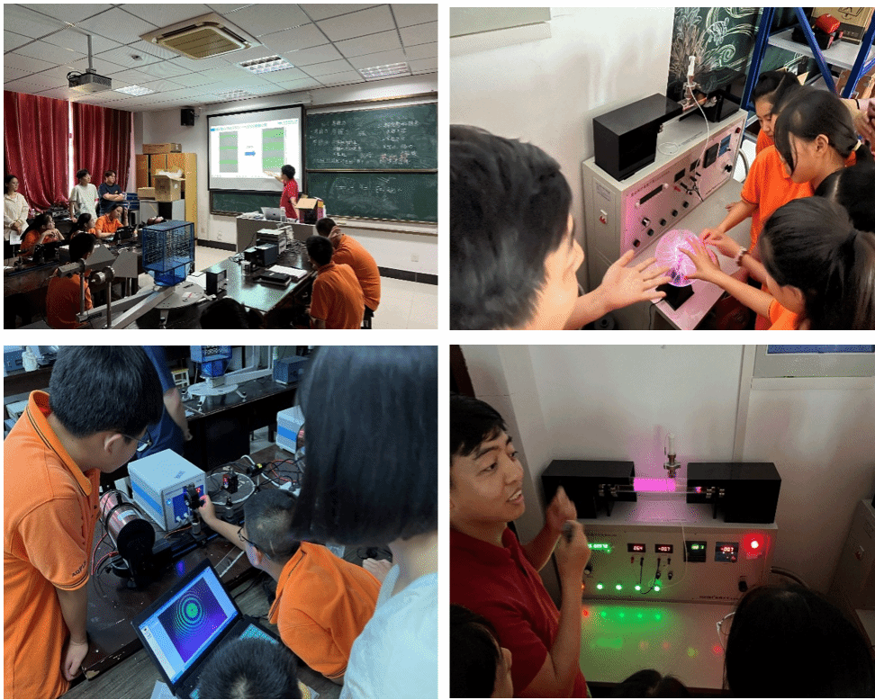 在实践环节,同学们分批次参观了太阳成集团tyc234cc的光学、力学、近代物理等实验室,详细了解了光学、力学和近代物理的实验设备和研究项目。
