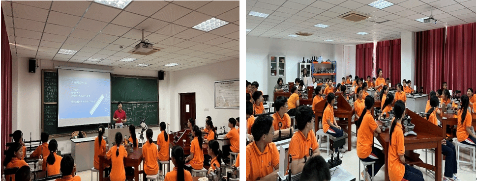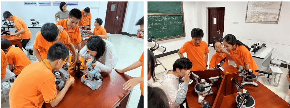 在光学实验室,李娟老师和她的学生志愿者们为学生们展示了光学实验的魅力,学生们通过观察和操作,亲身体验了科学实验的过程。