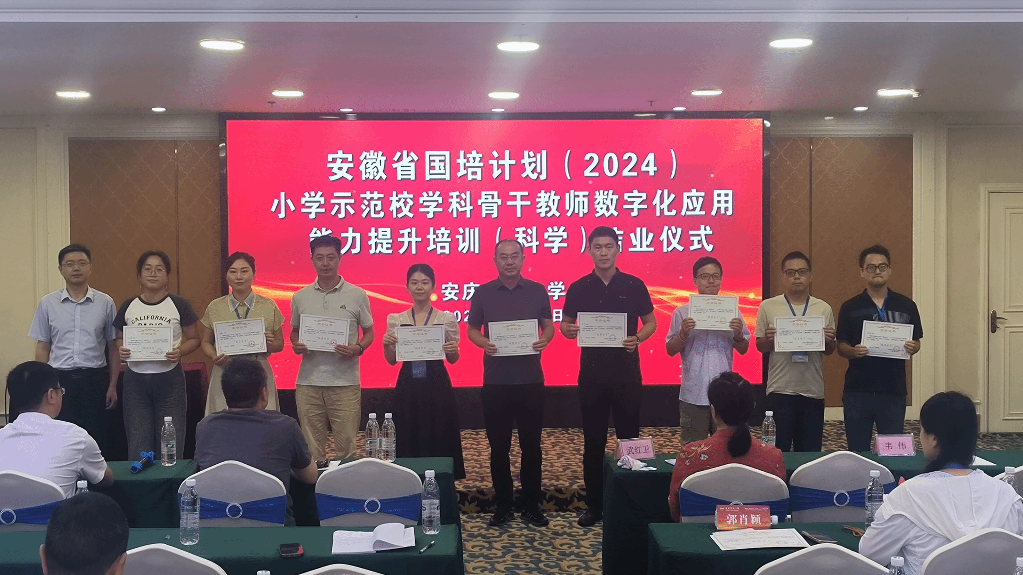 培训班教学班主任梁智雄、徐骏分别宣读了优秀学员名单和优秀课例名单,与会领导为大家颁发证书,希望大家在返岗后能将国培所学的知识和技能应用到实际教学中,以骨干教师的星星之火点燃安徽基础教育的燎原之势。(撰稿、摄影:余戡;审核:张海)
