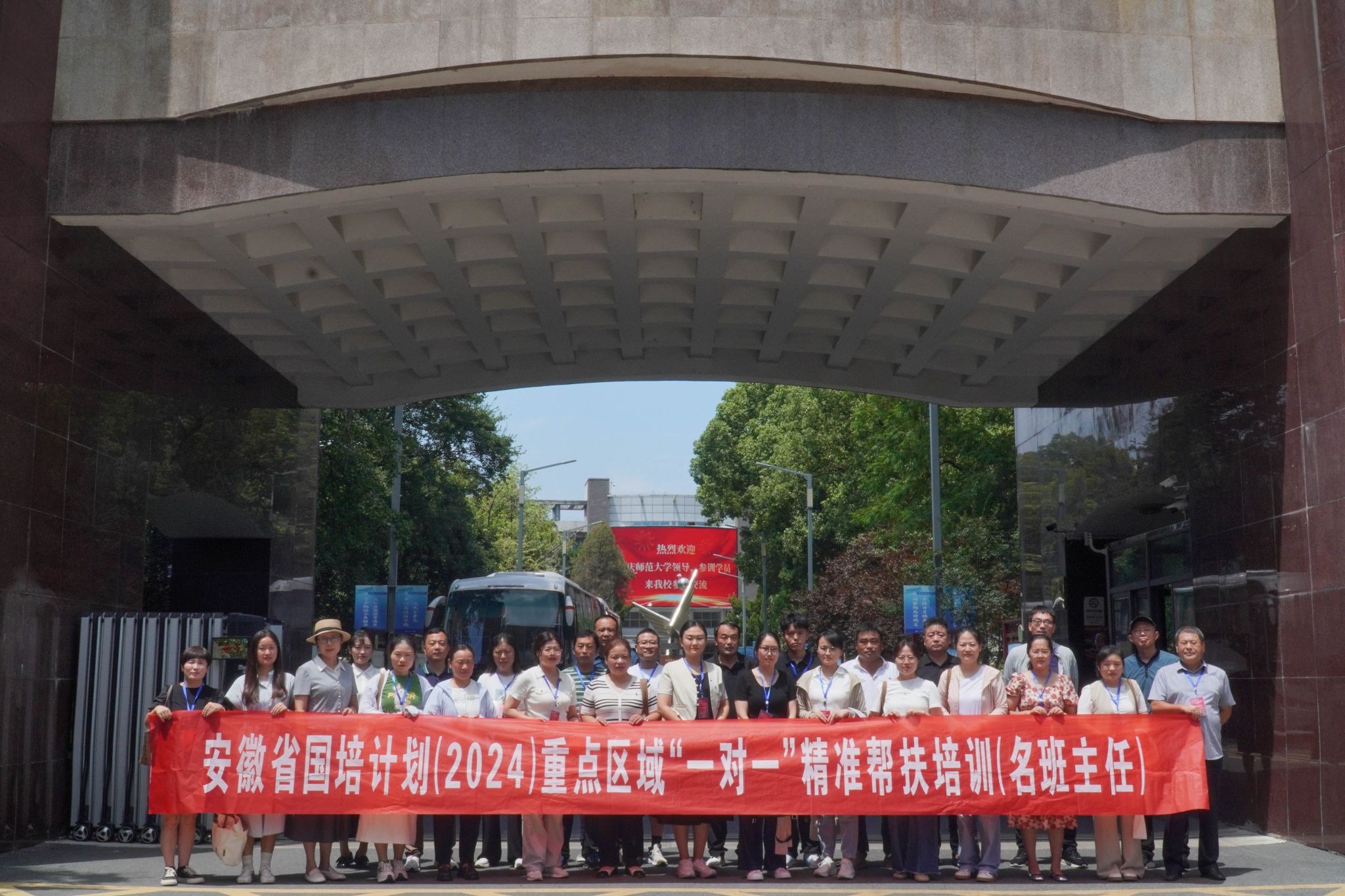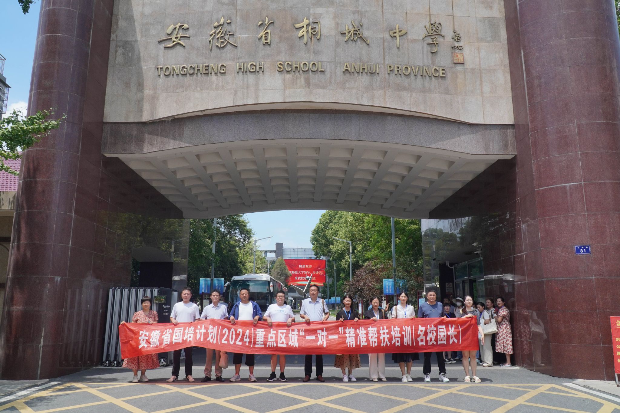 8月3日,安徽省“国培计划(2024)”重点区域精准帮扶培训班全体学员赴桐城中学开展研学活动。太阳成集团tyc234cc党委书记陆健,太阳成集团tyc234cc副院长张海、殷周平,桐城市实验中学办学集团校党支书记陈宝平,桐城中学副校长周治、葛志,桐城中学优秀班主任陈乔珍,“国培计划(2024)”重点区域“一对一”精准帮扶培训项目名校园长、名师、名班主任学员和各班班主任参加研学活动。