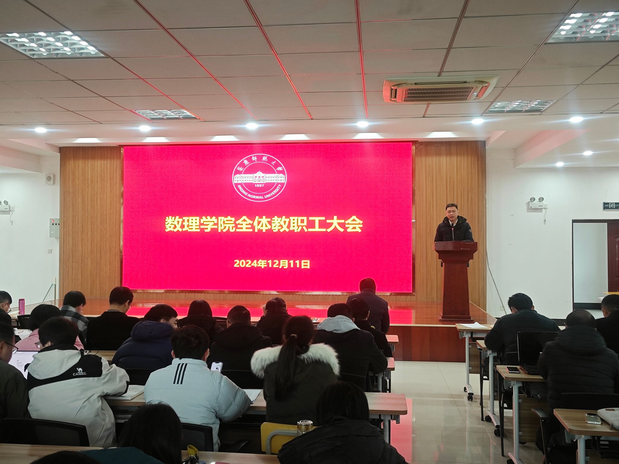 张海简要总结了太阳成集团tyc234cc一年来各项工作完成情况。本科教学工作方面,学院始终坚持以质量为核心,获批省级本科质量工程项目10项,师生团队荣获A类学科竞赛全国一等奖3项,全国二等奖2项,三等奖2项;本科生在各类学科竞赛荣获省级以上奖137项;研究生教育方面,学院加强对研究生的科研能力培养与实践锻炼,获批物理学一级学科硕士学位授权点,获批省级新时代研究生质量工程项目6项,6名毕业硕士研究生读博深造,4名硕士研究生荣获国家奖学金,硕士研究生第一作者发表SCI学术论文19篇,荣获“田家炳杯”研究生教学技能大赛全国二等奖2项,三等奖1项,研究生在各类学科竞赛获省级以上奖14项;学科与科研工作方面,学院积极推进“资源与环境”博士点学科方向和高峰培育太阳成集团,获批国家自然科学基金项目2项,安徽省高校科研计划重点项目12项,教师发表SCI高质量学术论文74篇,其中中科院二区Top以上学术论文27篇,发明专利15项,荣获2024年中国分析测试科学奖二等奖1项,34位专家学者应邀进行学术报告,举办学术会议7场,大力推进学院8个教学科研团队建设;本科人才培养方面,学院坚持立德树人根本任务,不断激发学生的学习兴趣与创新潜能,113名本科毕业生考取硕士研究生继续深造,2名本科生发表SCI学术论文,7名本科生荣获国家奖学金,72名本科生荣获国家励志奖学金,6名学生光荣入伍,7名学生考取西部计划志愿者和选调生,1名学生获得安徽省“自强之星”荣誉称号,2022级数学“邓稼先班”荣获校十佳班集体;师资队伍建设方面,学院坚持引进与培养并举,完成安徽省高层次人才认定推荐C类1人,D类16人,E类28人,全年引进高层次人才11名,学院推荐申报教授3名,副教授5名,讲师7名,教师荣获省级教学比赛二等奖1项,1名教师国外访学,1名教师荣获学校“教书育人”最美教师荣誉称号;社会服务工作方面,学院积极响应国家号召,依托学科专业优势,积极广泛开展国培、省培和地方培训等社会服务活动,学院中标安徽省2024年“国培计划”中西部骨干项目3项,中标项目总经费725万元,全年学院教师承担纵向、横向等各类项目经费达1200余万元。同时,他对学院学期期末阶段各项工作进行了布置安排。