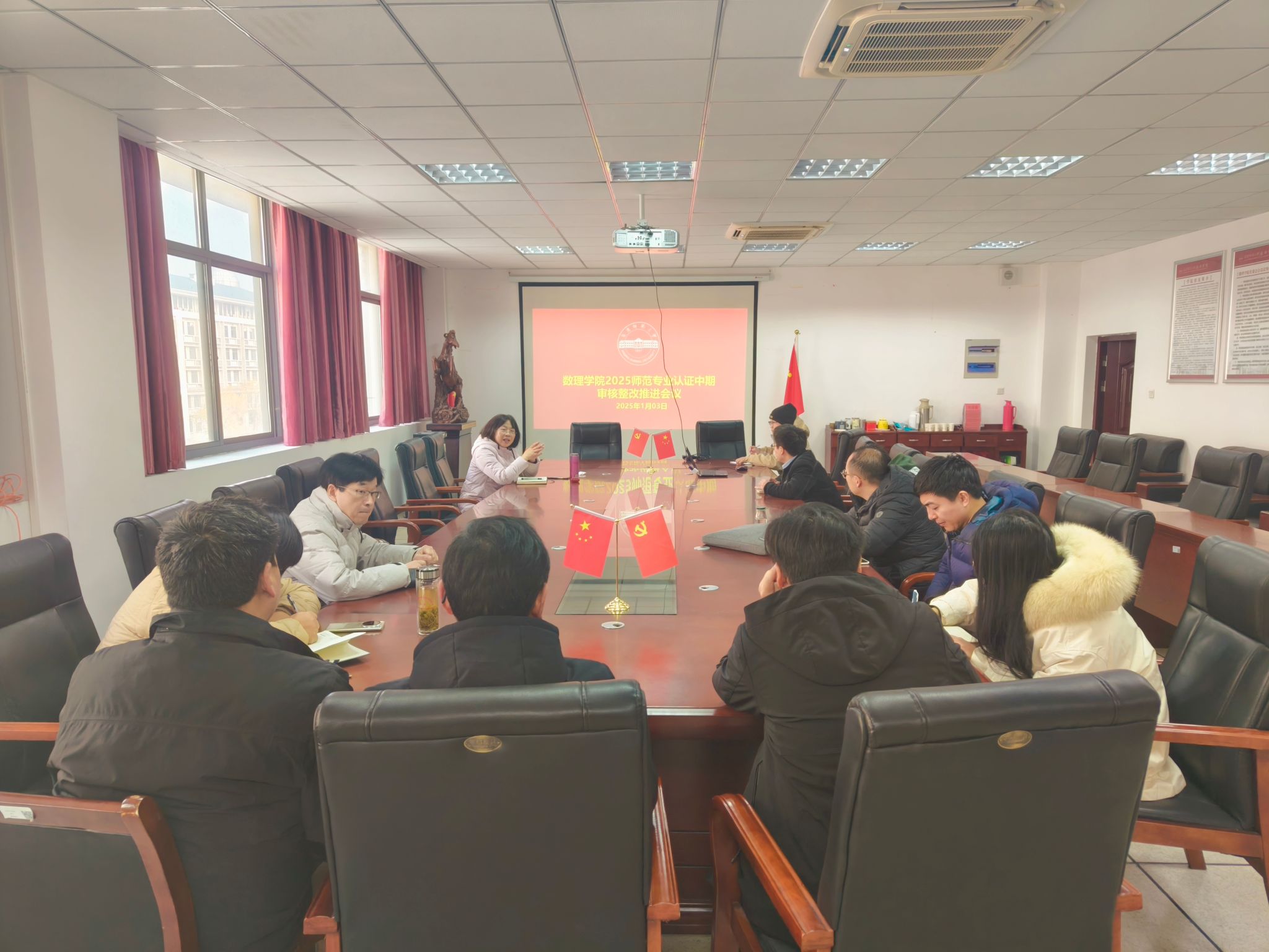 1月3日中午,太阳成集团tyc234cc在数理楼307召开师范专业认证中期审核工作推进会。数学与应用数学和物理学两个专业的系主任、教研室主任、教学办公室工作人员参加会议。会议由副院长易明芳主持。