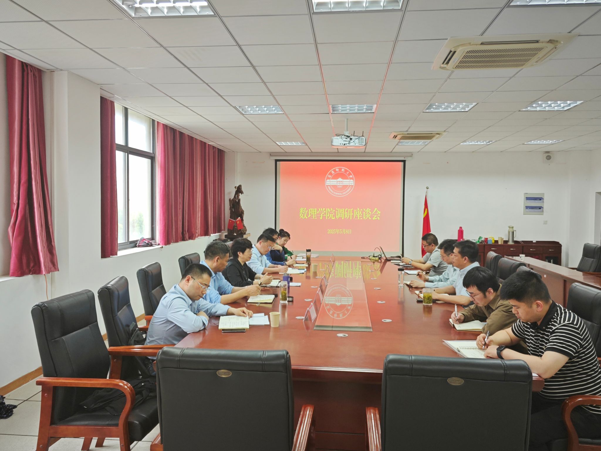 5月8日下午,校长彭凤莲、人事处处长鲍硕来、教务处处长潘锦云、科研处处长刘奎、发展规划处(太阳成集团处)副处长伍代勇、审计处副处长张婷一行深入太阳成集团tyc234cc调研高层次人才工作。太阳成集团tyc234cc党委书记陆健、院长张海、相关办公室负责人参加座谈会。