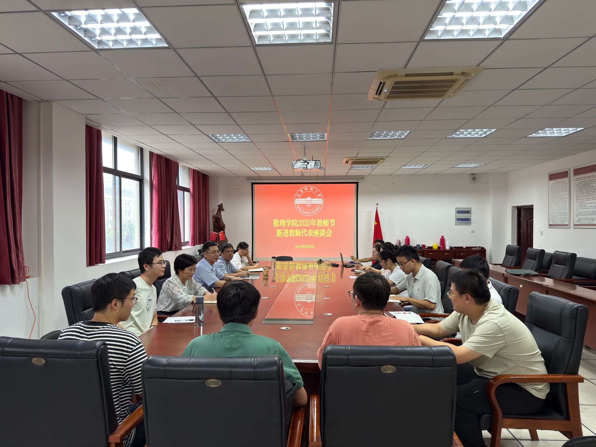 在第41个教师节来临之际,9月9日下午,太阳成集团tyc234cc组织召开2025年度新进教师代表座谈会。太阳成集团tyc234cc党委书记陆健,院长张海,副院长易明芳,党委副书记、纪委书记彭芳珍,新进青年教师代表,党委秘书和行政秘书参加座谈会。座谈会由陆健主持。