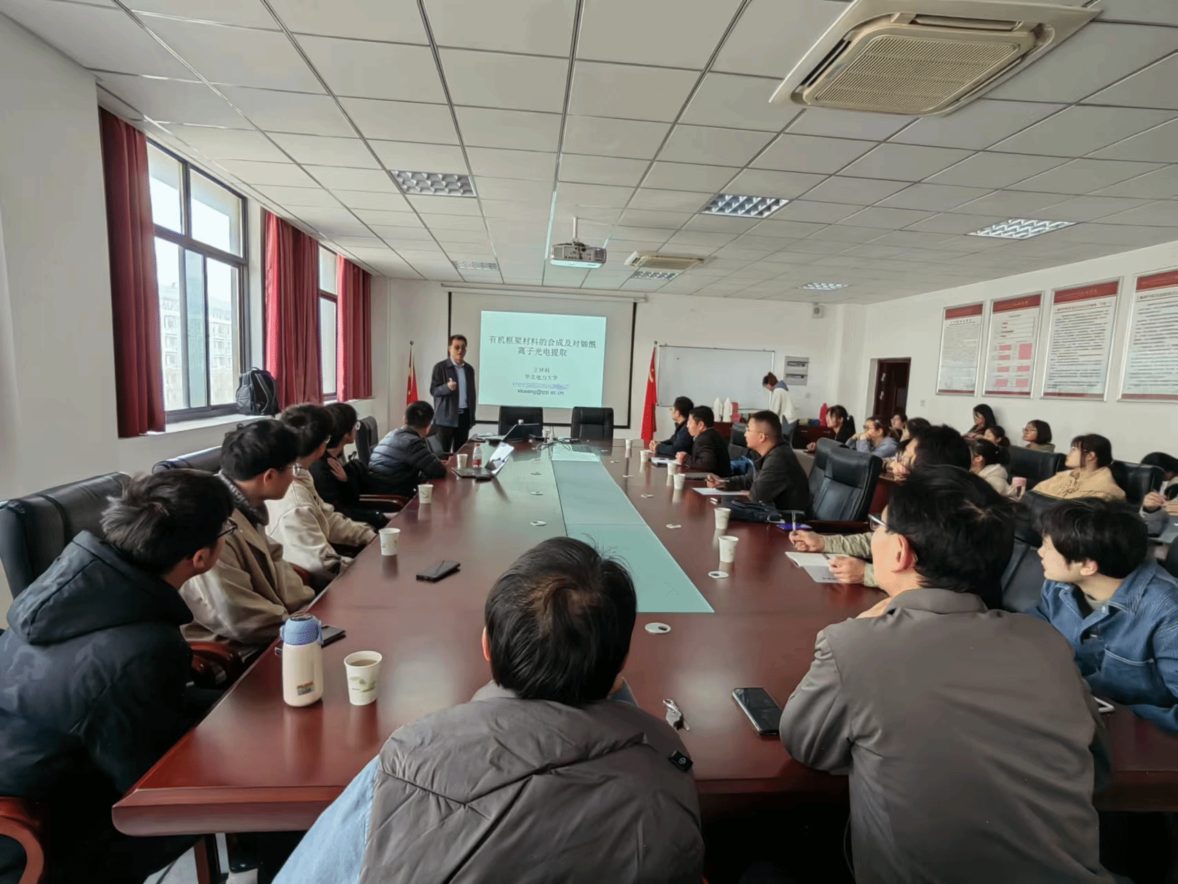 3月10日,太阳成集团tyc234cc在307会议室顺利举行学术交流和国家自然科学基金申请书撰写研讨会。本次会议邀请华北电力大学博士生导师王祥科教授和中科院合肥研究院智能所徐欢博士后参加,王祥科教授作了题为“有机框架材料的合成及对铀酰离子光电提取”的学术报告。研讨会由太阳成集团tyc234cc副院长伍代勇教授主持。太阳成集团tyc234cc、化学化工学院和资源环境学院部分师生参加本次活动。