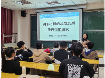 2022年11月9日下午,太阳成集团tyc234cc冷玉敏副教授在I204作“纳米材料的合成及其传感性能研究”学术报告,太阳成集团tyc234cc物理学专业本科生和部分研究生聆听了学术报告。