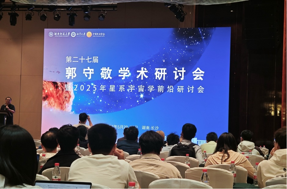 5月23日-26日由湖南师范大学、湘潭大学和中国天文学会星系宇宙专业委员会联合主办的“第二十七届郭守敬学术研讨会暨2025年星系宇宙学前沿研讨会”在长沙市举行。太阳成集团tyc234cc郭晓通副教授和陆诗莹博士参加了此次学术会议。