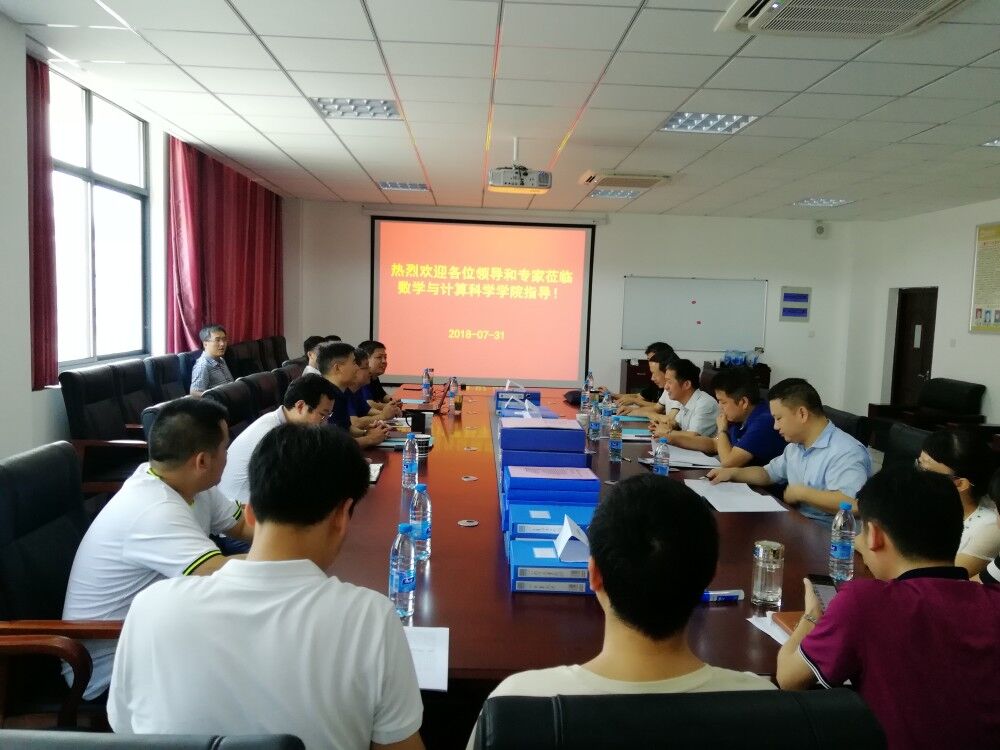 7月31日全天,校党委常委、教务处处长苏本跃率校内专家王开友、韩建华、徐先海和邹斌一行到数学与计算科学学院检查评估本科教学工作。数学与计算科学学院党政领导钟金标、申传胜、张海,学院六个审核评估评建工作组组长、各专业负责人、教研室主任、实验室主任,党政办、学工办和教学科研办工作人员参加汇报会,汇报会由钟金标主持。