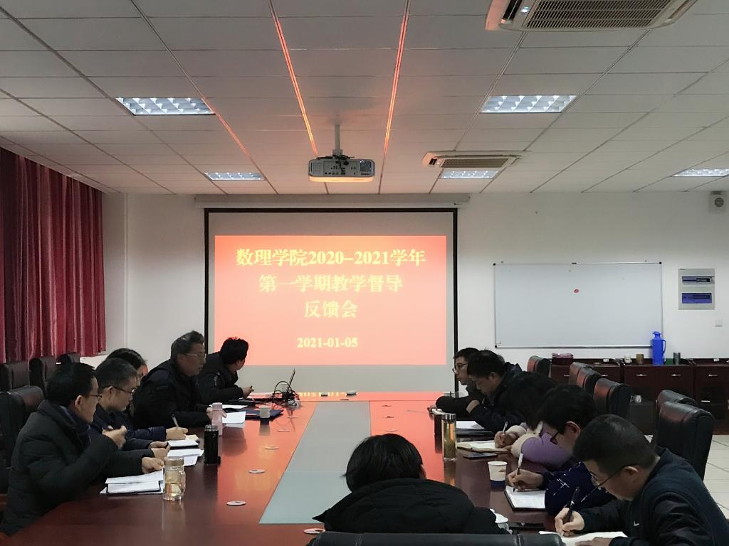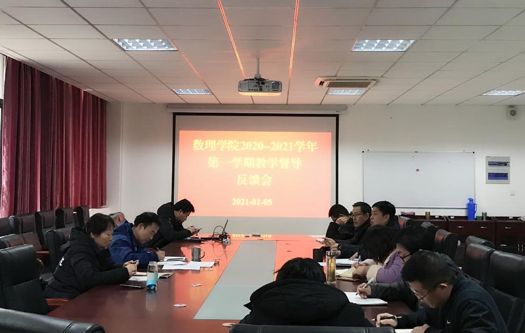1月5日下午,太阳成集团tyc234cc在数理楼307会议室分别召开2020-2021学年第一学期校级教学督导反馈会和院级教学督导反馈会。校级教学督导员钱萌教授和程再玲副教授,院级教学督导员叶淼林教授、胡万宝教授、胡学平教授和李娟副教授,学院党政领导,以及各系部主任、团学办公室负责人、教学秘书和教务员参加会议,会议由副院长张海教授主持。