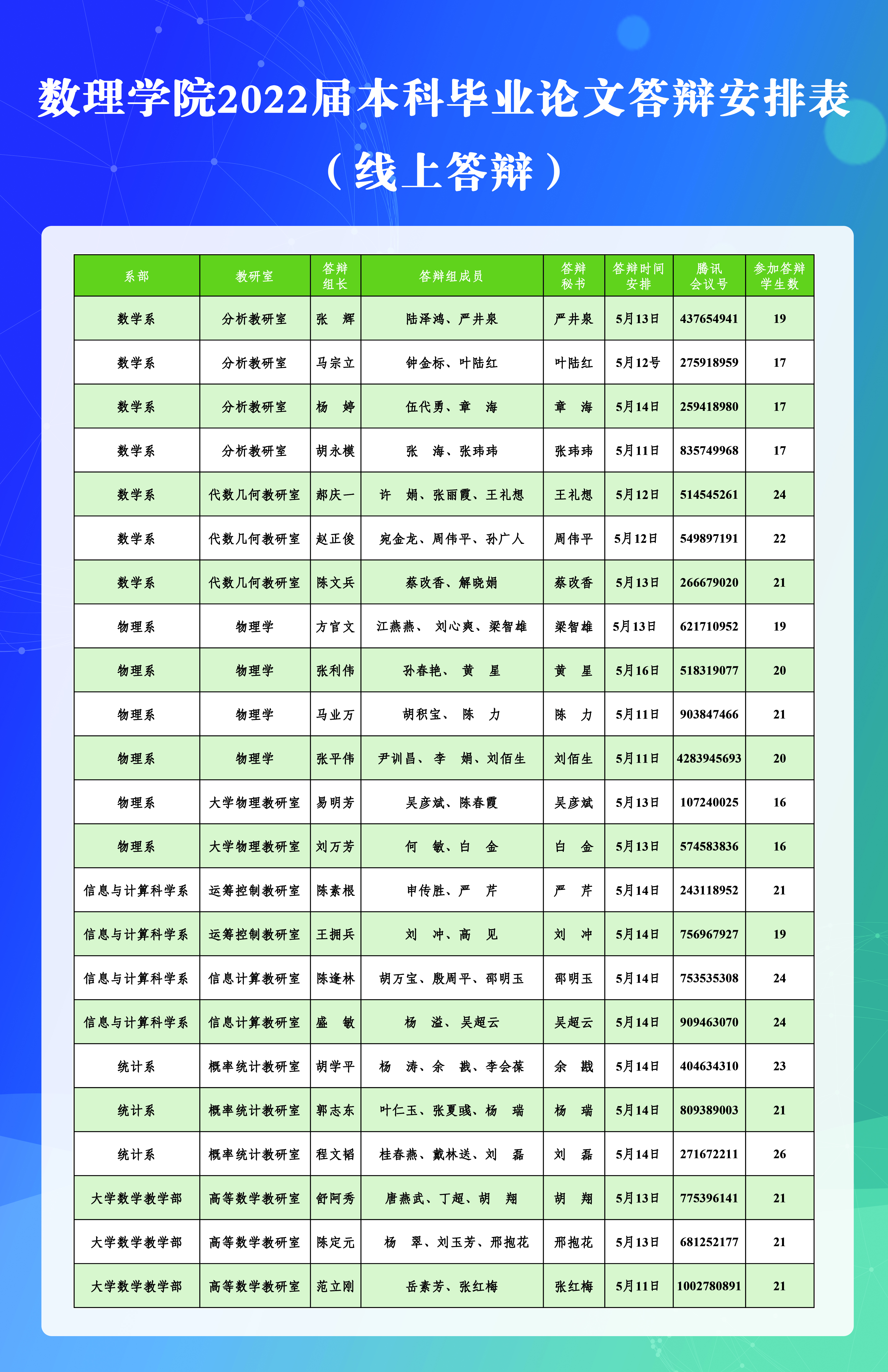 太阳成集团tyc234cc2022届本科毕业论文答辩安排表(线上答辩)