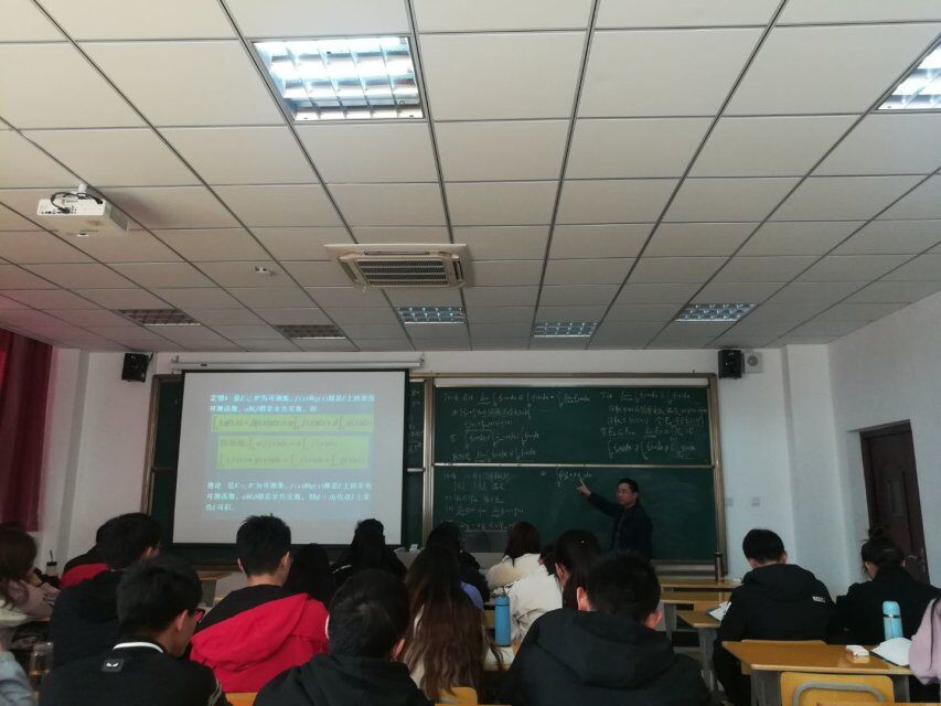 11月19日上午,分析教研室组织老师们在数学楼502教室观摩了伍代勇老师的《实变函数》课程。首先,伍老师通过回顾上次课程所学的内容,引入了列维定理。其次,结合图形讲解列维定理的意义与证明思路。在讲解证明的过程中,伍老师时时补充和回顾相关的知识,同时通过提问时刻关注学生的掌握程度,师生互动活跃。