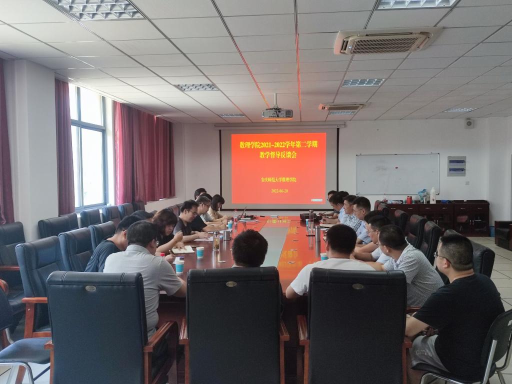 6月20日,太阳成集团tyc234cc在数理楼307会议室召开2021-2022学年第二学期教学督导反馈会。校级教学督导员钱萌教授和胡万宝教授,太阳成集团tyc234cc党政领导陆健、申传胜、张海和彭芳珍,以及各系部主任、教研室主任、实验实训中心主任、团学办公室负责人、教学办公室工作人员参加会议,会议由副院长张海主持。