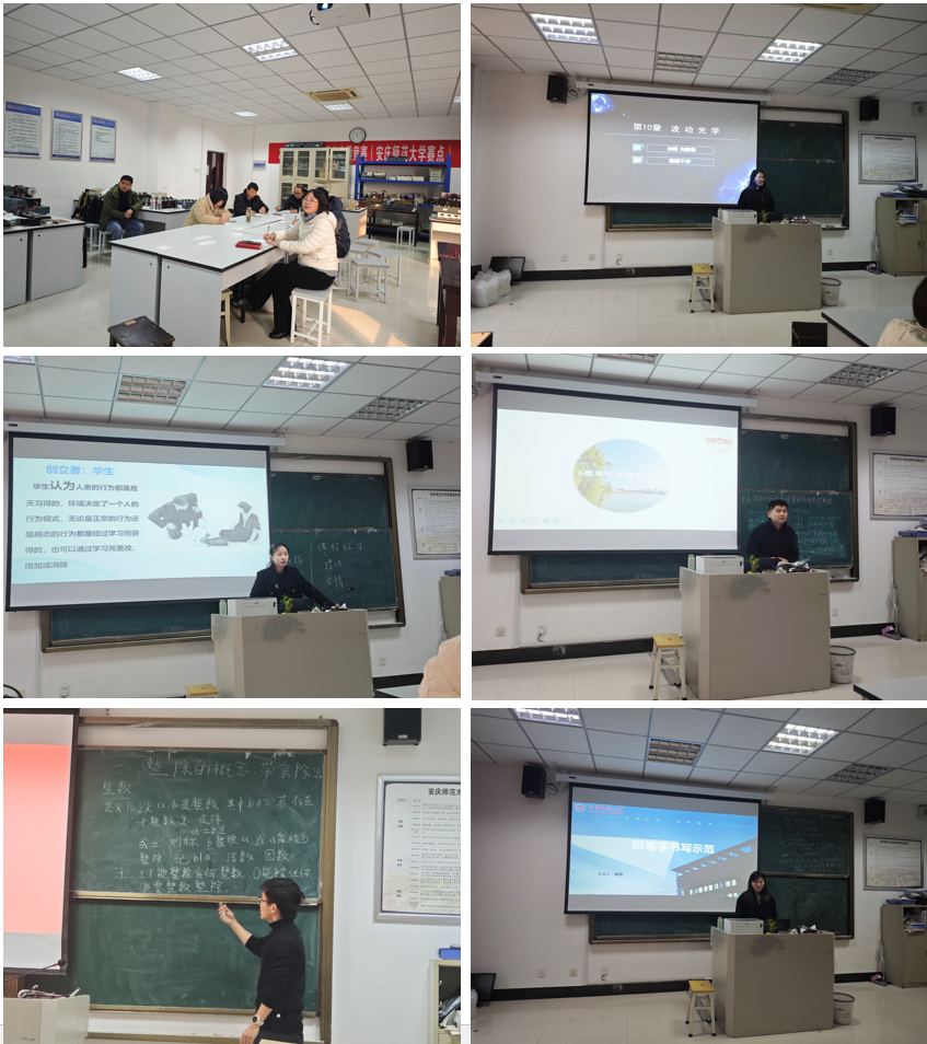 12月18日下午,太阳成集团tyc234cc在数理楼202教室举行新进教师教学试讲活动。副院长易明芳教授、教学督导胡学平教授、学术委员会委员张利伟教授、各系主任参加听课、评课活动,教学办公室工作人员及太阳成集团tyc234cc全体新进青年教师参加本次活动,活动由易明芳主持。