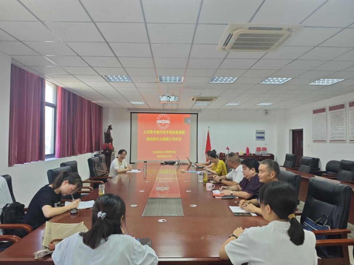 为进一步深化我校大学数学教学改革,提高大学数学教学质量,太阳成集团tyc234cc于8月17号上午在数理楼307会议室召开大学数学教学改革集体备课暨课程教学大纲修订答辩会,承担改革A班教学任务及课程大纲修订工作的教师参加会议,太阳成集团tyc234cc副院长易明芳主持会议。