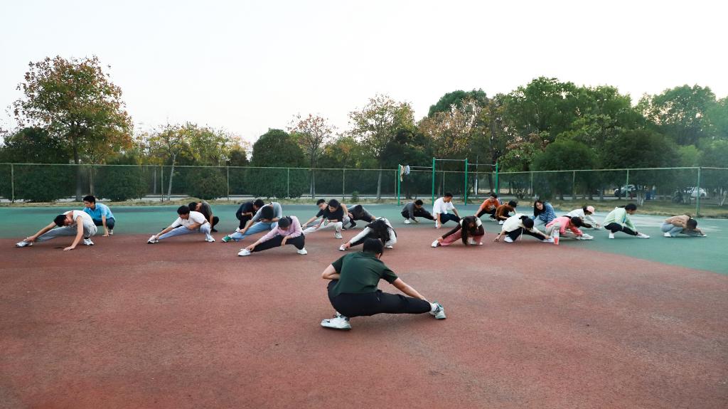 扩胸伸展、弓步压腿、屈膝弹跳……退役复学学生、数学专业2020(2)班的陈旭作为活动首日的领跑队长,在开跑前先带领同学们进行热身运动,避免运动过程中可能造成的身体损伤。在带队跑步时,他指导并规范了学生们的长跑动作和气息调节方式。“体育运动已经成为我们生活中不可或缺的一部分。”他坦言,“希望大家可以将锻炼融入日常生活,激发自觉参与运动的热情,保持积极阳光的运动心态。”